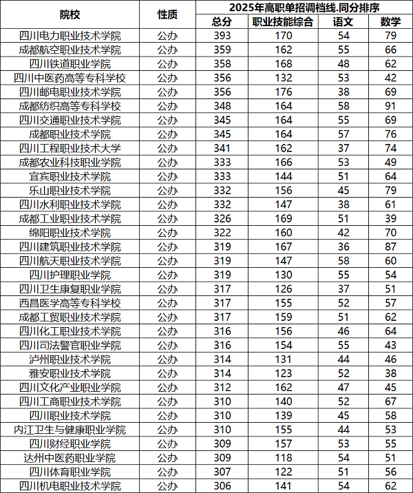 2026年四川高职单招院校名单及2025年高职单招分数线
